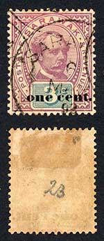 Sarawak SG23 1c on 3c (2nd type) CDS used Broken O