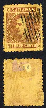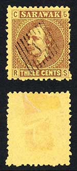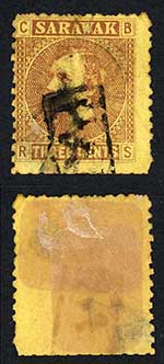 Sarawak SG2 3c Brown/yellow S in Diamond cancellation Broken B