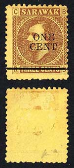 Sarawak SG74 1c on 10c Dull Blue 0.75mm Bars U/M Cat 600 pounds RARE