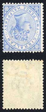 Gibraltar SG42w 2 1/2d Bright Ultramarine Wmk INVERTED M/M Cat 400 pounds