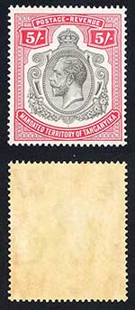 Tanganyika SG105 5/- Carmine-red U/M Cat 60++ pounds