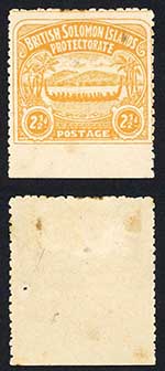 Solomon Is SG4 2 1/2d Large Canoe Imperf bottom margin (couple of light thins)
