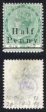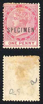 Dominica SG22s 1d Wmk CA opt SPECIMEN No Gum