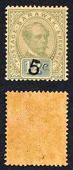 Sarawak SG27 1c on 3c Brown/yellow Mint (no gum as normal) Cat 10 pounds