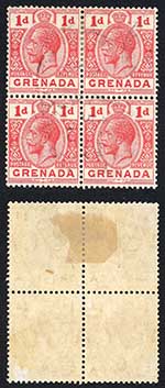 Grenada SG91 1d Red Wmk Mult CA CDS Block of Four