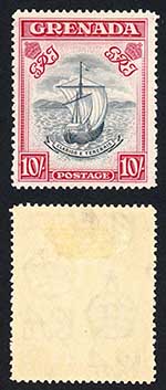 Grenada SG163e 10/- Blue-Black and carmine Perf 14 (narrow) M/M Cat 55 pounds