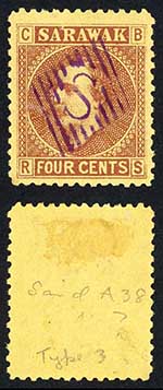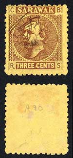 Sarawak SG2 3c Brown/yellow S in Diamond cancellation Pane B