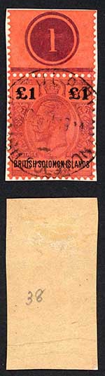 Solomon Is SG38 One Pound Wmk Mult CA CDS PLATE 1 Cat 150++ pounds