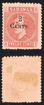 Sarawak SG33 2c on 12c with Small s in cents