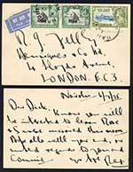 KUT SG1935 20c Silver Jubilee and 5c Pair on postcard to London