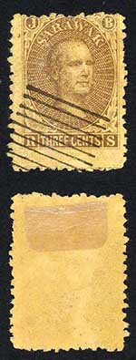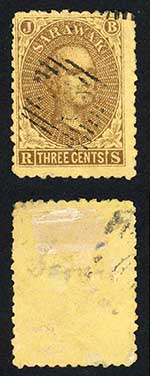 Sarawak SG1 3c Brown/yellow used with 9 Bar pmk Very Scarce Cat 250 pounds