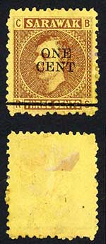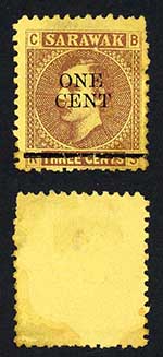Sarawak SG27 1c on 3c Brown/yellow Mint (no gum as normal) Cat 10 pounds