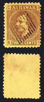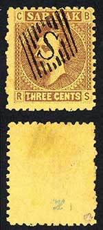 Sarawak SG2 3c Brown/yellow S in Diamond cancellation Wmk LNL