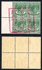 Malacca Japanese Occupation SGJ47 3c Green Block with Complete Seal RARE