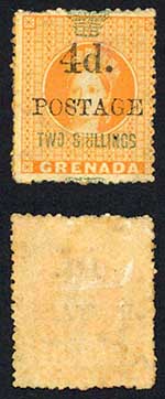 Grenada SG41a 4d on 2/- Upright D M/M Cat 800 pounds