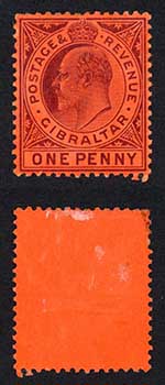 Gibraltar SG57a 1d Wmk Mult CA Chalky paper M/M Cat 9 pounds