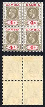 Gambia SG117 4/- wmk Script (top and Key value) Block 2 x U/M Cat 440 pounds