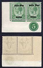 SWA SG1 1/2d Green opt Zuid-West Plate Pair U/M